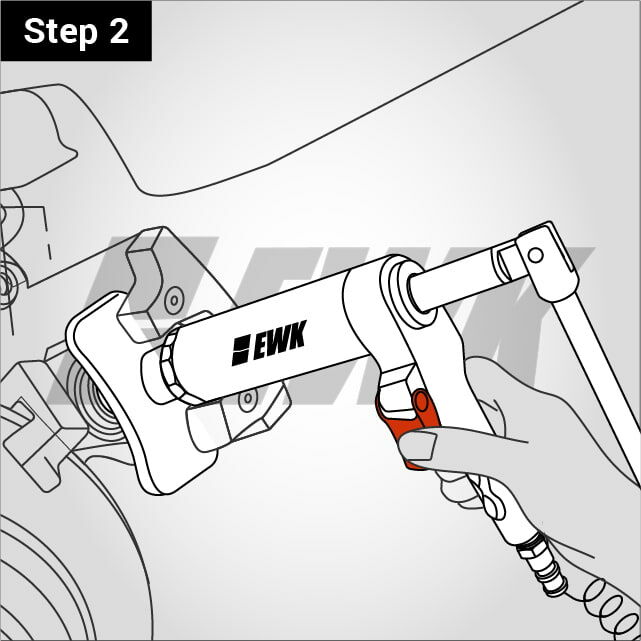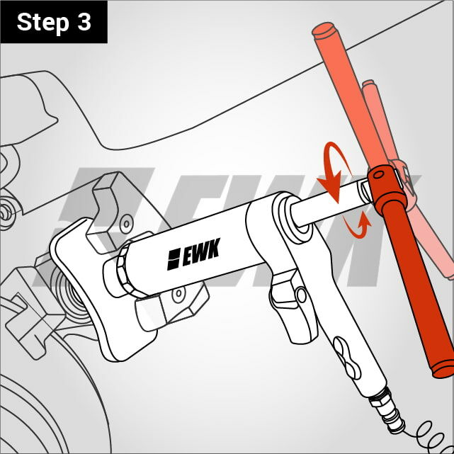 Secure the spindle of the Pneumatic Brake Caliper Compression Tool with the hole facing upwards.