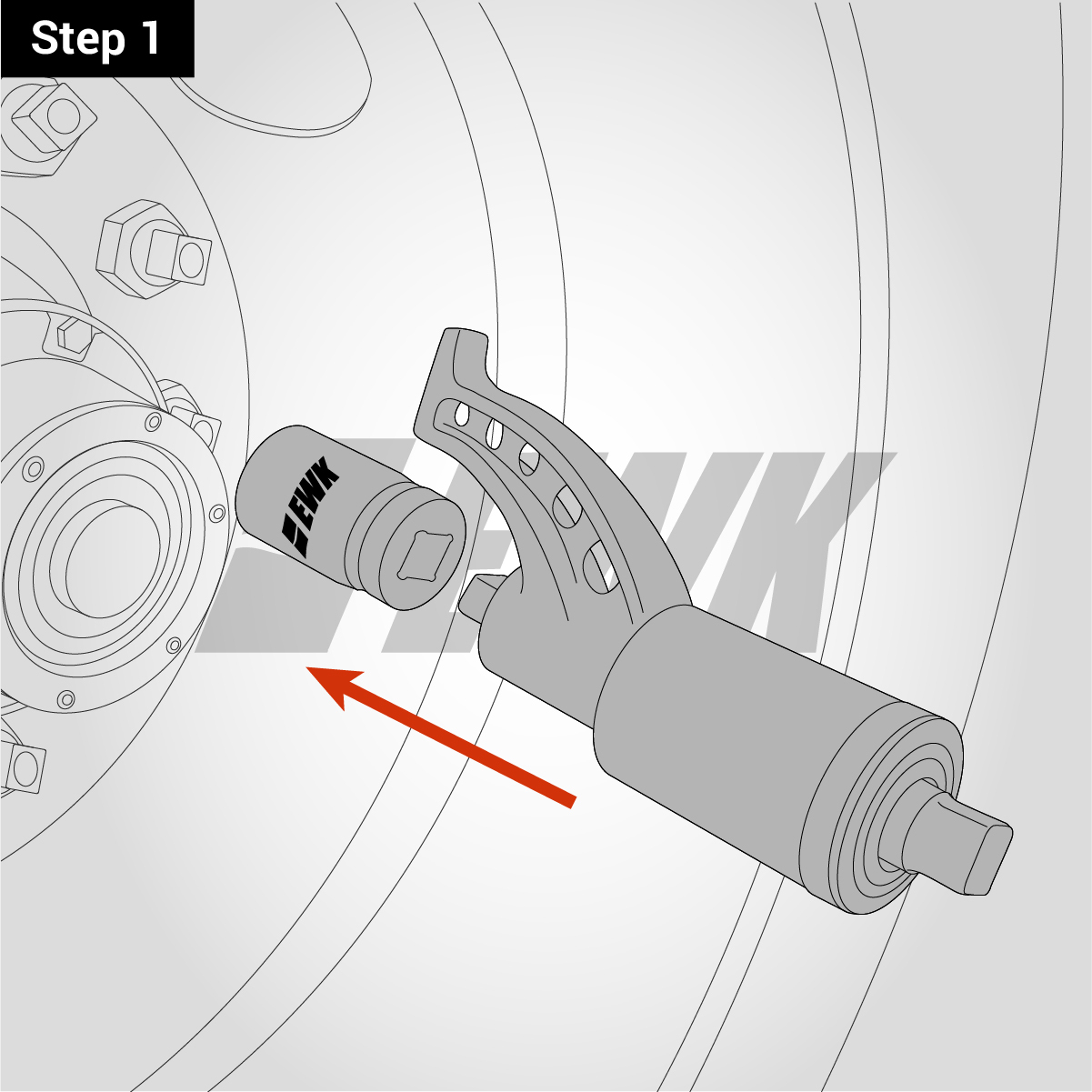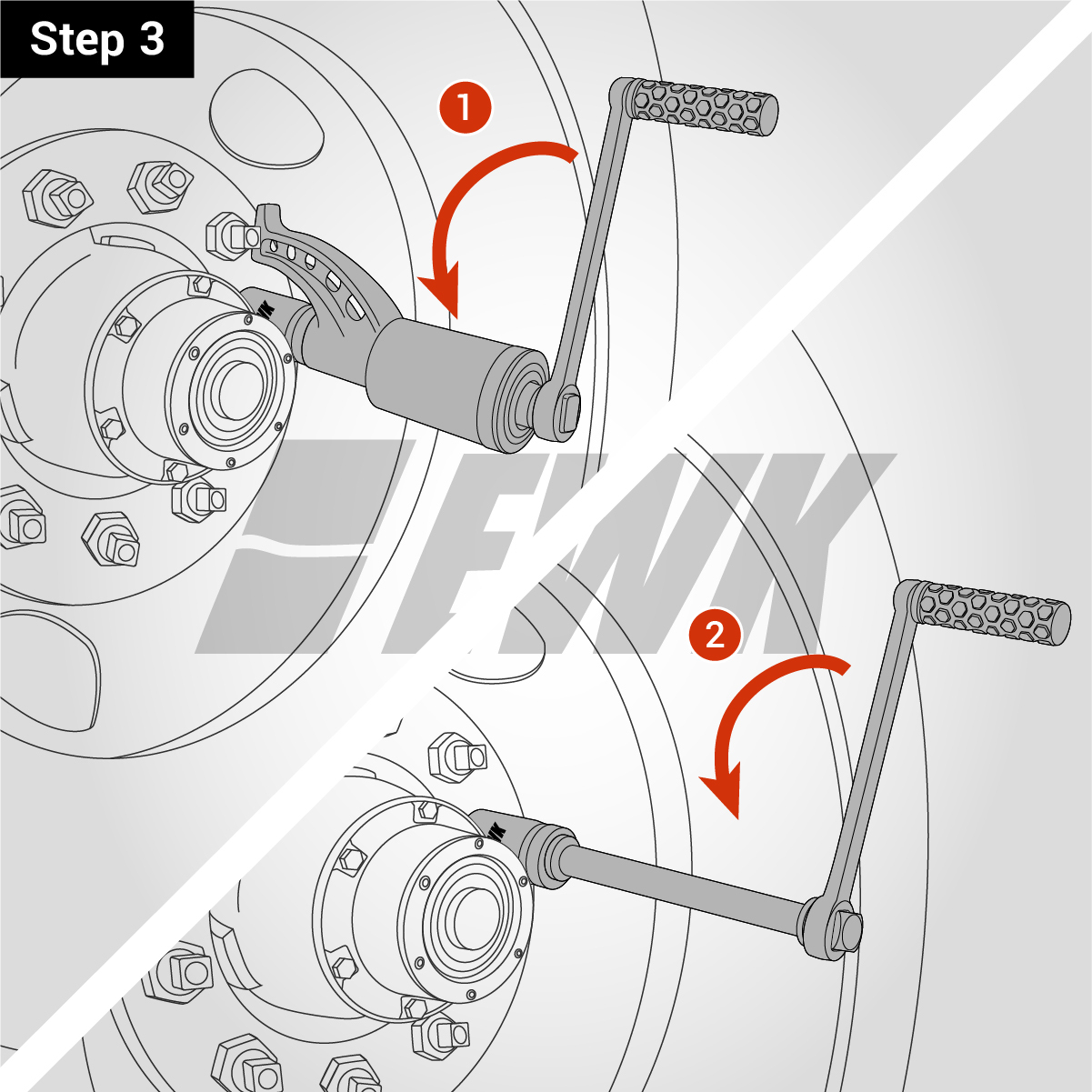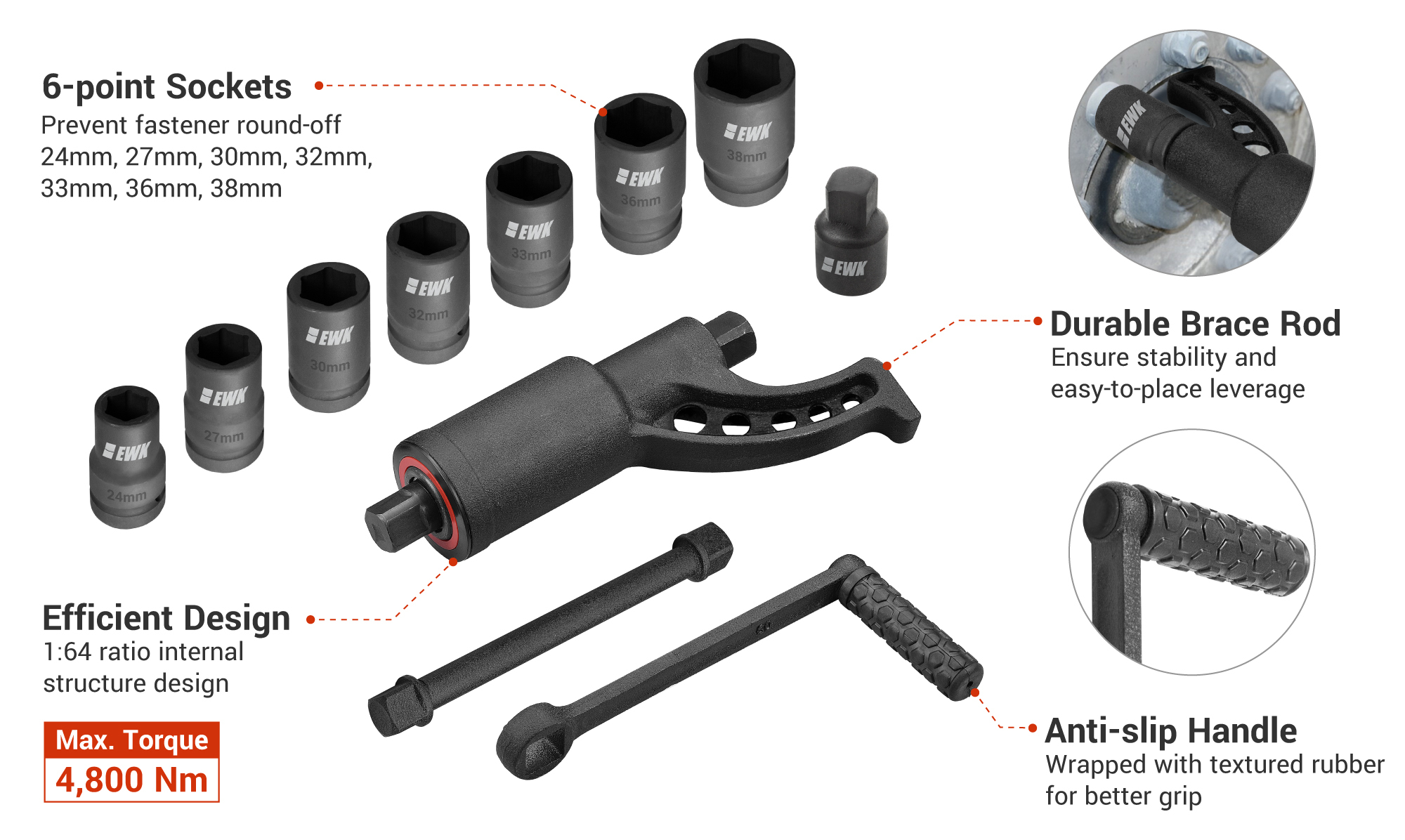 Attach the rocking handle bar to the torque wrench and turn to loosen the nut.Utilize the extension bar for swift nut removal following loosening.