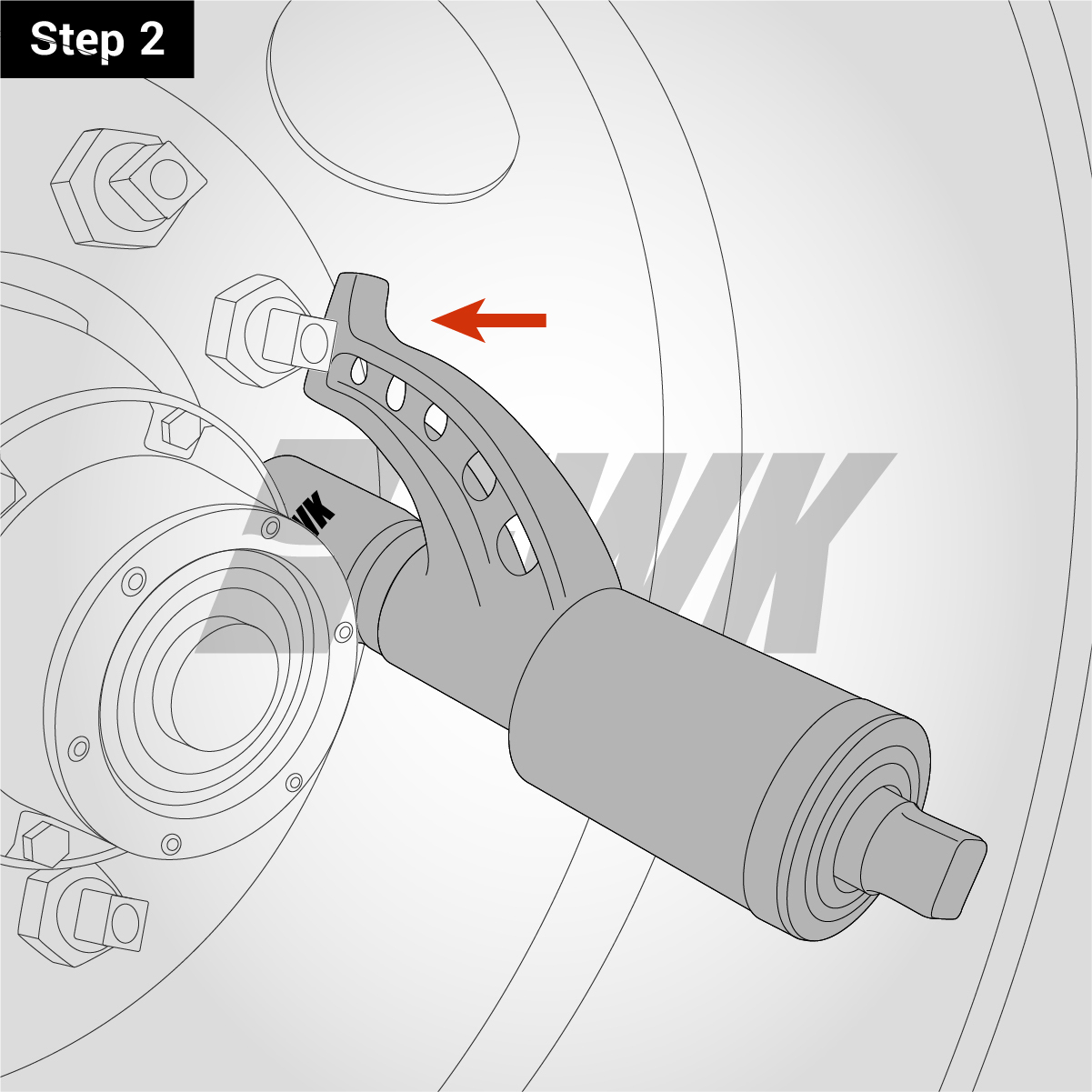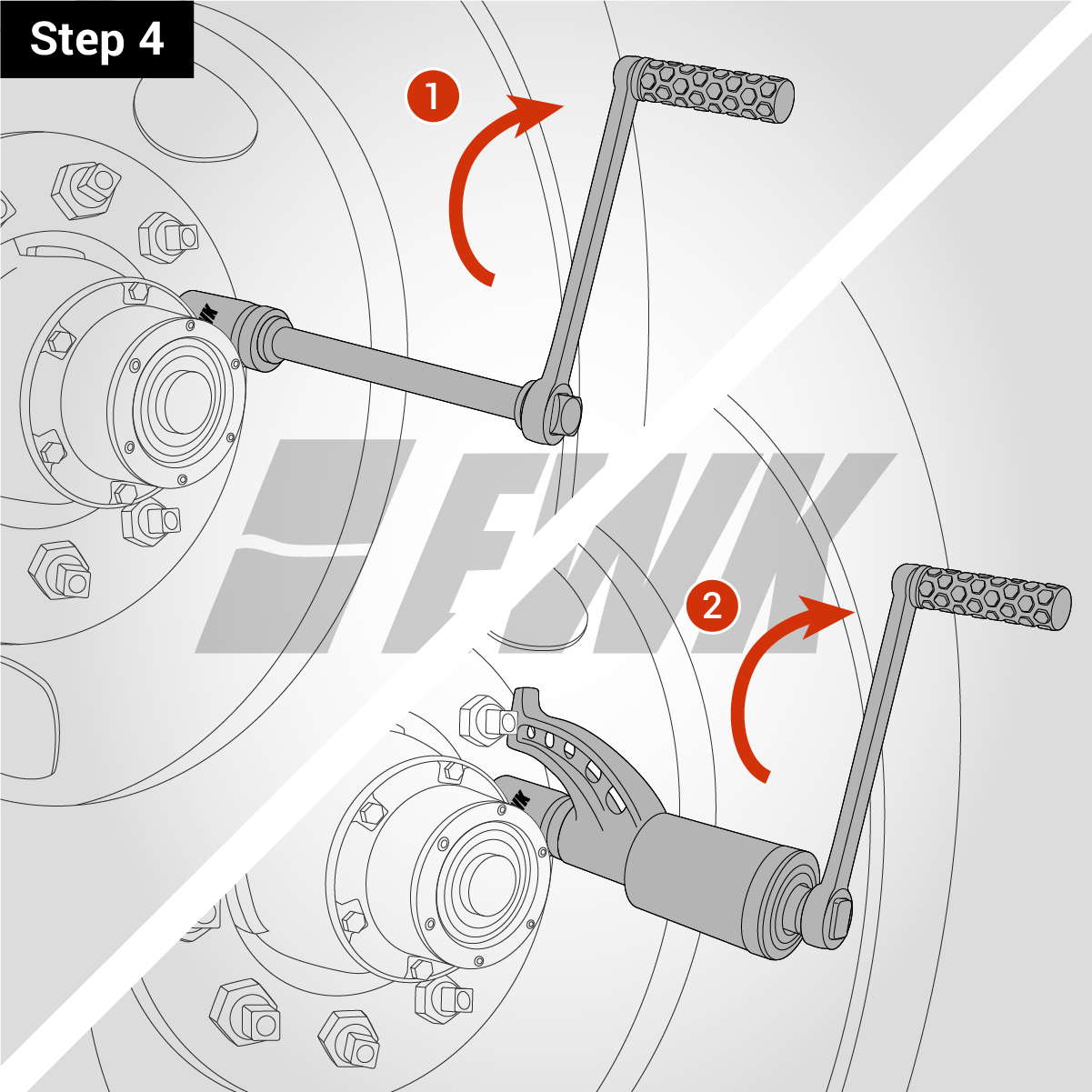 Anchor the brace rod against the wheel hub to ensure steady operation and leverage.