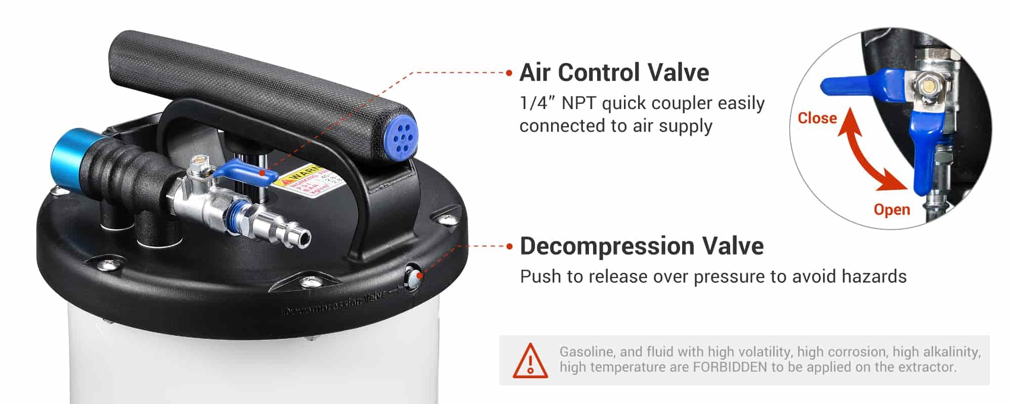 After extracting all the oil, press the decompression valve to release the unit's built-up pressure for 5 seconds.
