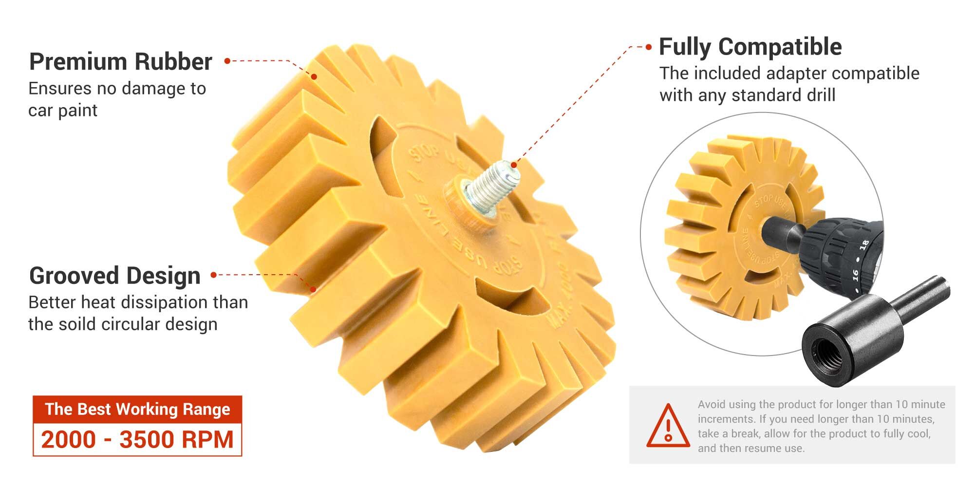 Attach the eraser wheel to a standard drill with included drill adapter.