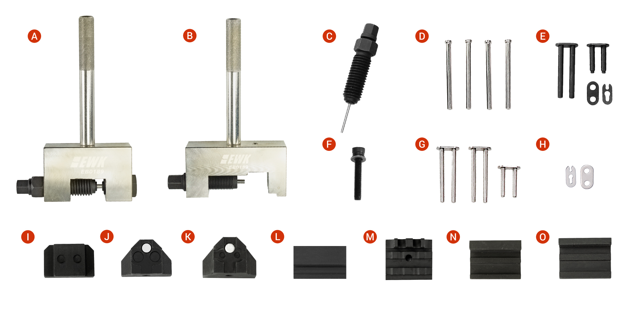 | A | OEM No. 602589023300, 3+4mm Chain Separator Tool | I | OEM No. 602589026300, 3+4 mm Thrust Piece, for assembly |