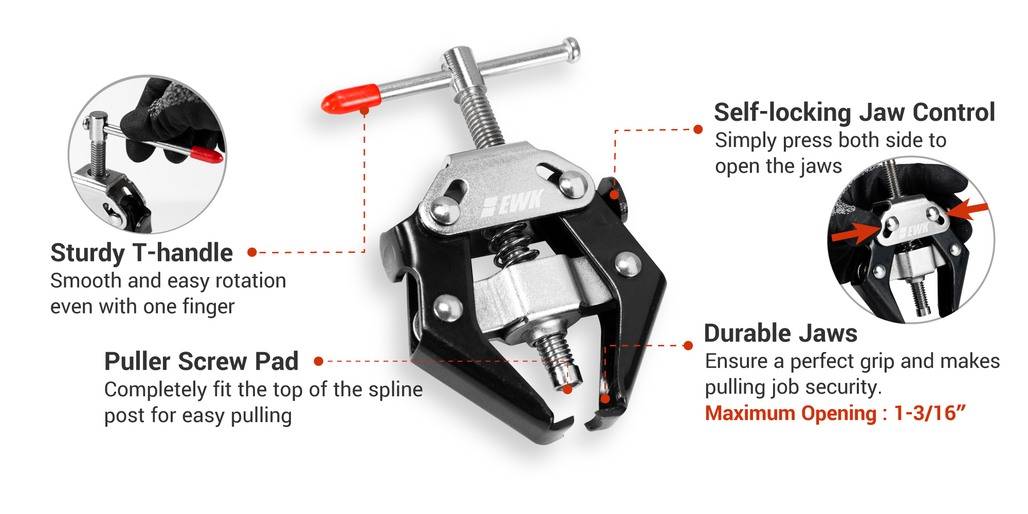 ▲ Simply lock the wiper arm puller jaws behind the wiper arm, and spin T-handle clockwise to pull the wiper arm off of its mounting shaft.
