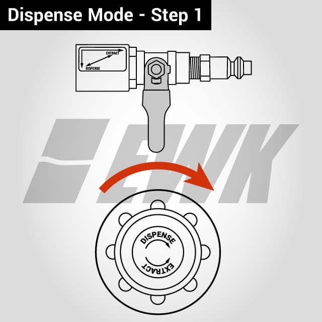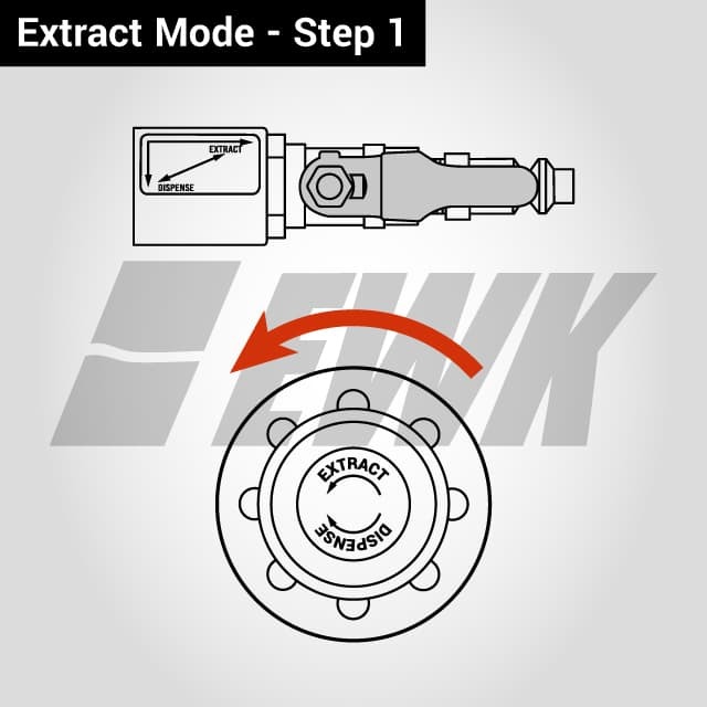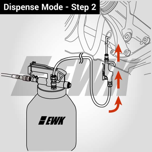 To fill vehicle transmission, please install a suitable adapter on the fluid dispenser gun, and turn the mode switch valve to "DISPENSE" and flow direction lever to dispense mode.