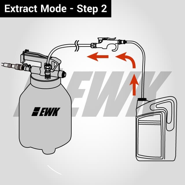 Connect the pump to air compressor and lock the trigger lock. Insert the hose into the new ATF fluid and press the hose trigger to start to fill the tank.