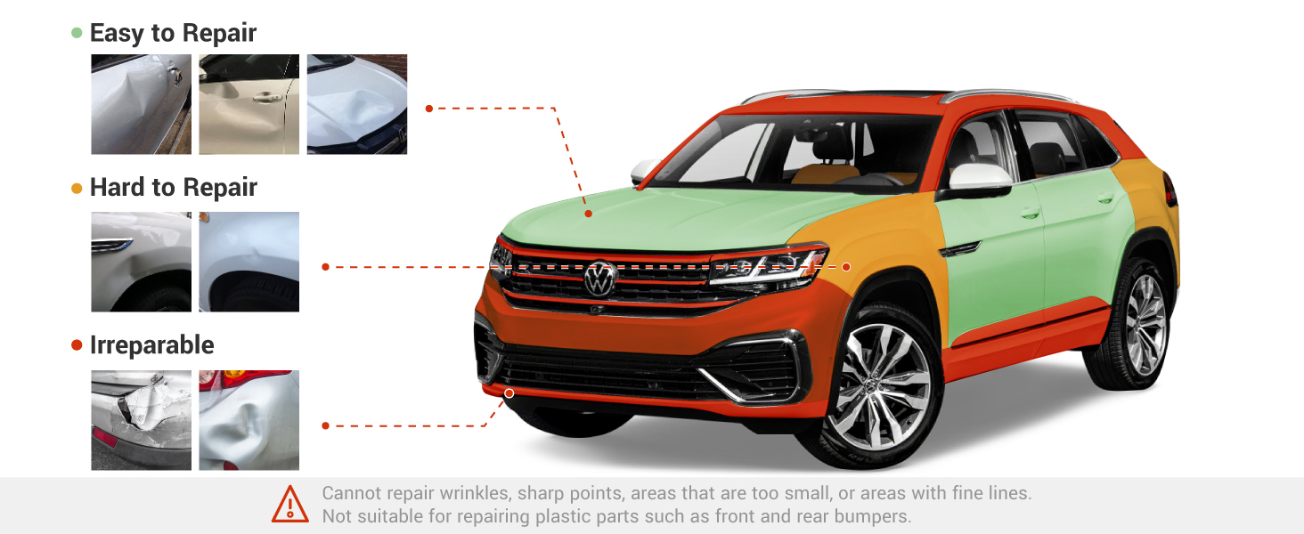 Use the sliding hammer to pull out the dent. Please do not apply excessive force to the slide hammer.