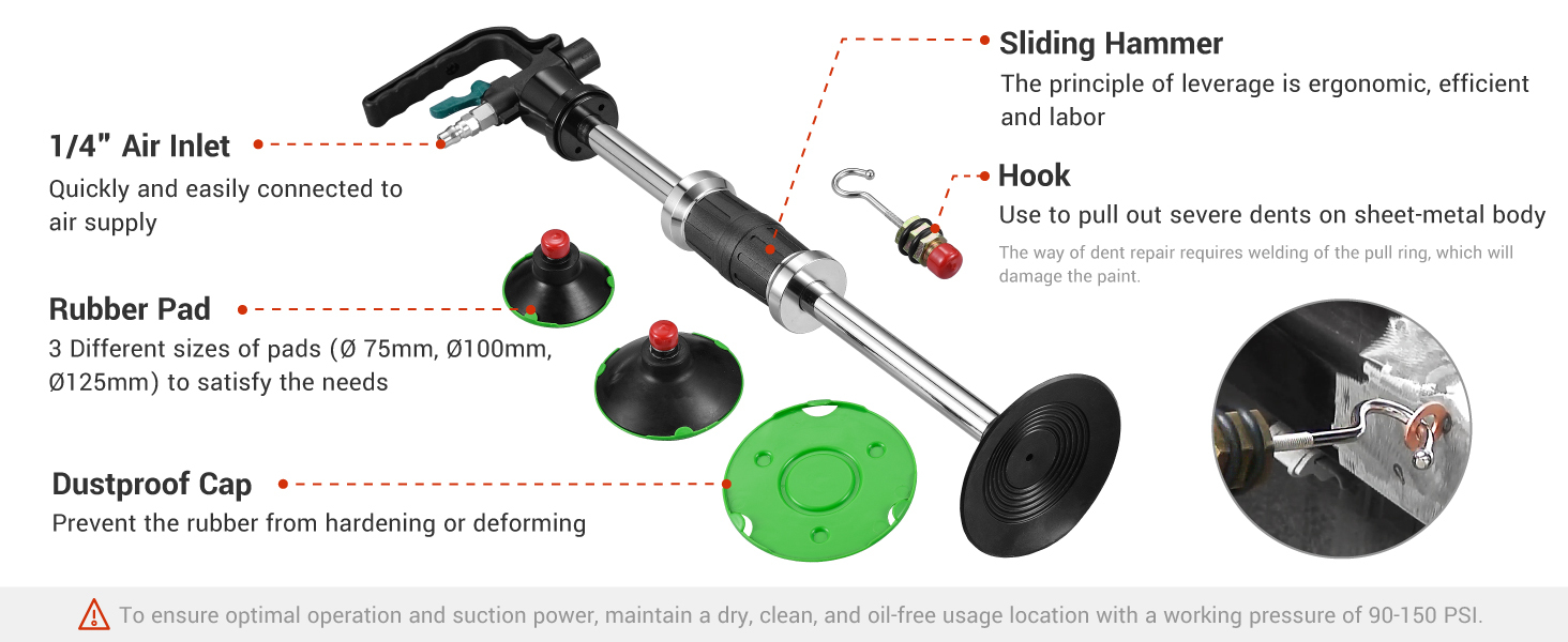 Turn the air valve off and remove the puller from body panel after the repair job done.