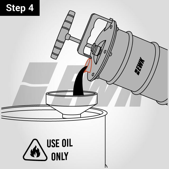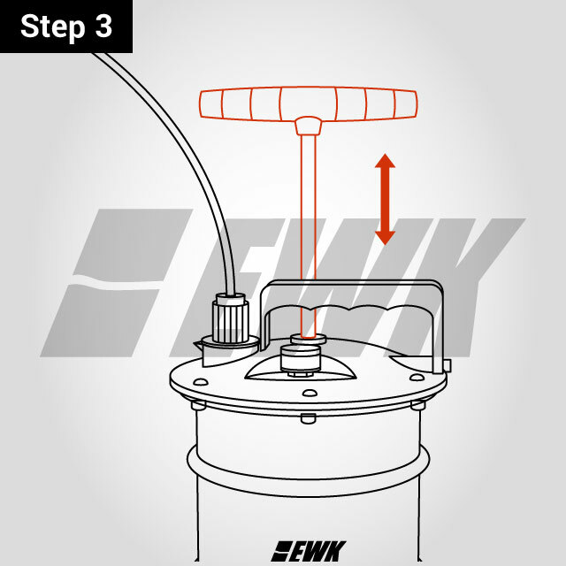Pump the handle several times until enough vacuum is created and you will see the fluid begins to fill the tank.