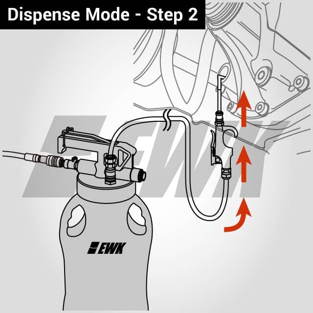 To fill vehicle transmission, please install a suitable adapter on the fluid dispenser gun, and turn the mode switch valve to "DISPENSE" and flow direction lever to dispense mode.