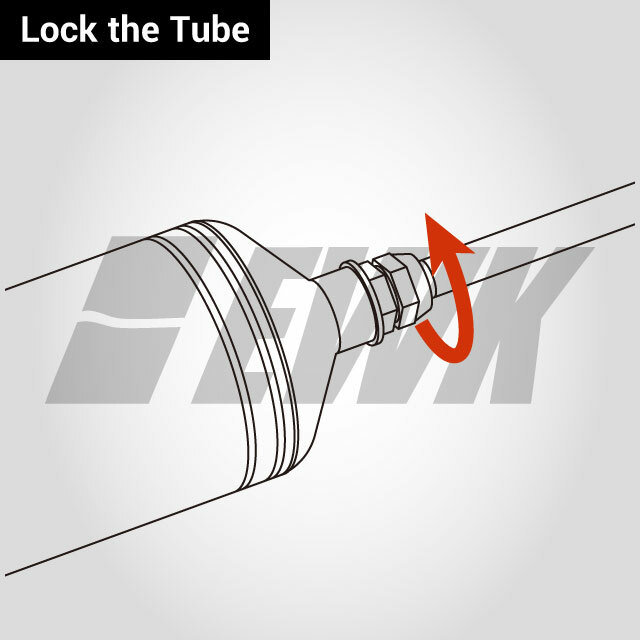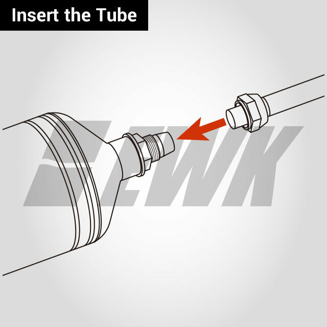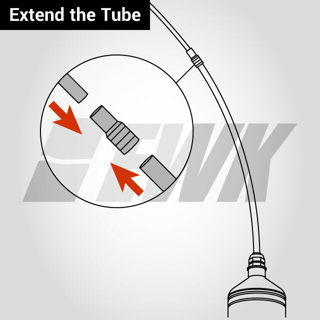 The rubber connector attaches the 1/4″ tube to the 3/8″ tube with a tight seal.