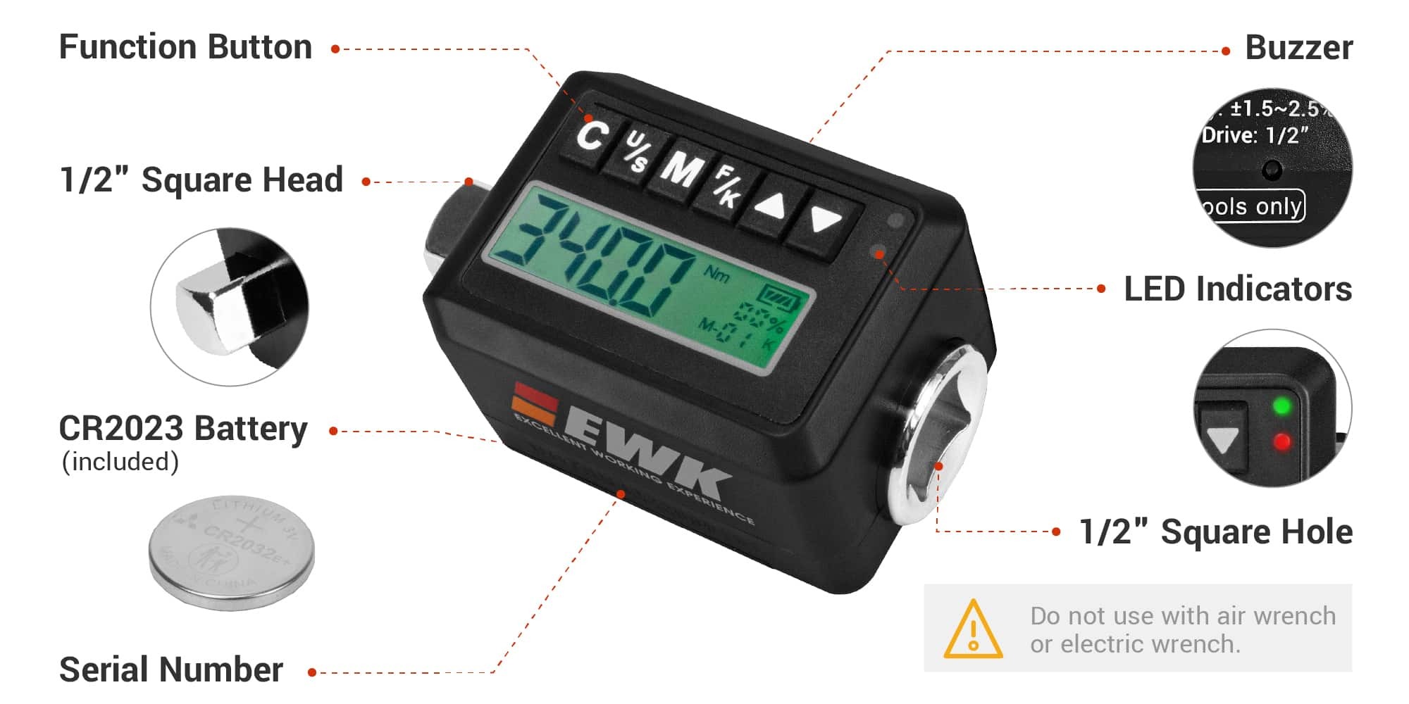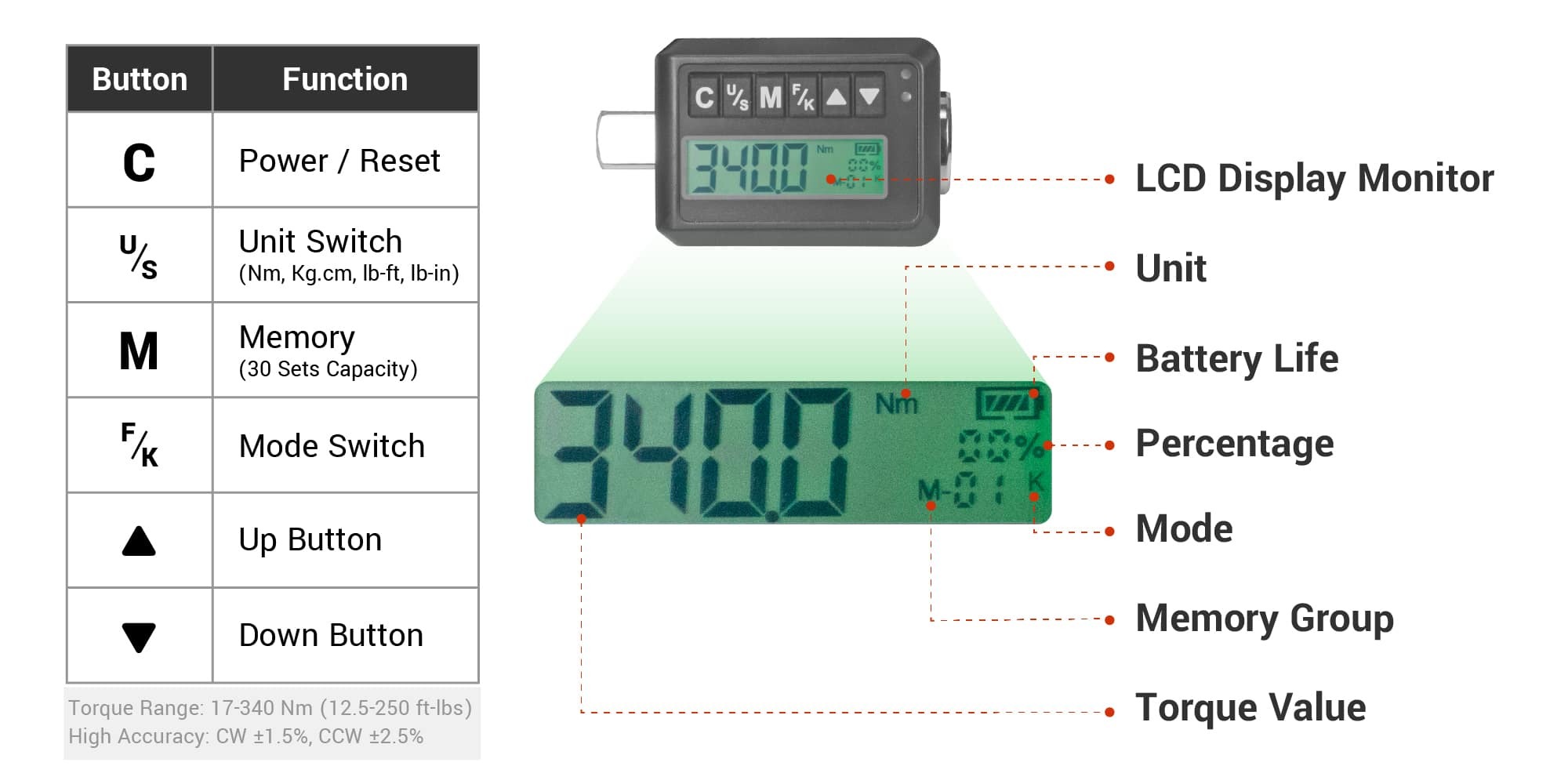 Turn the wrench and the applied force will be displayed on the LCD screen. Stop turning the wrench once you reach your desired torque setting.