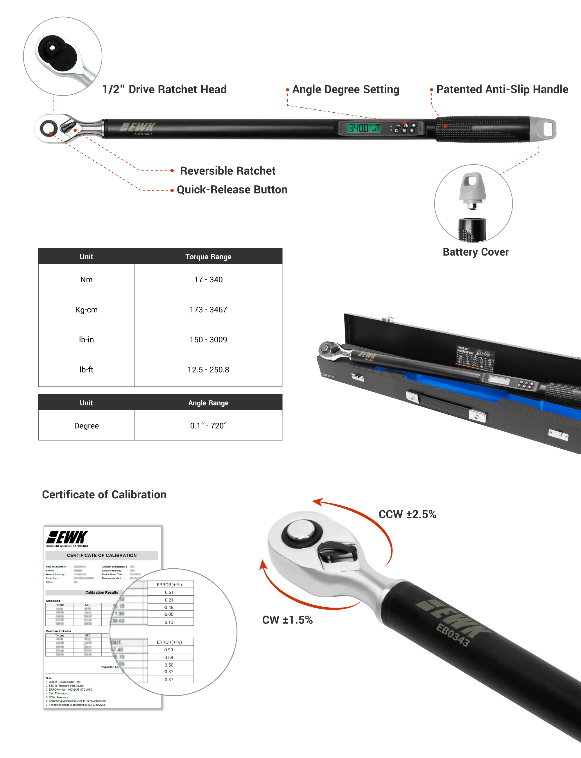 DO NOT apply force to the torque wrench before completing the procedure to turn on this product.