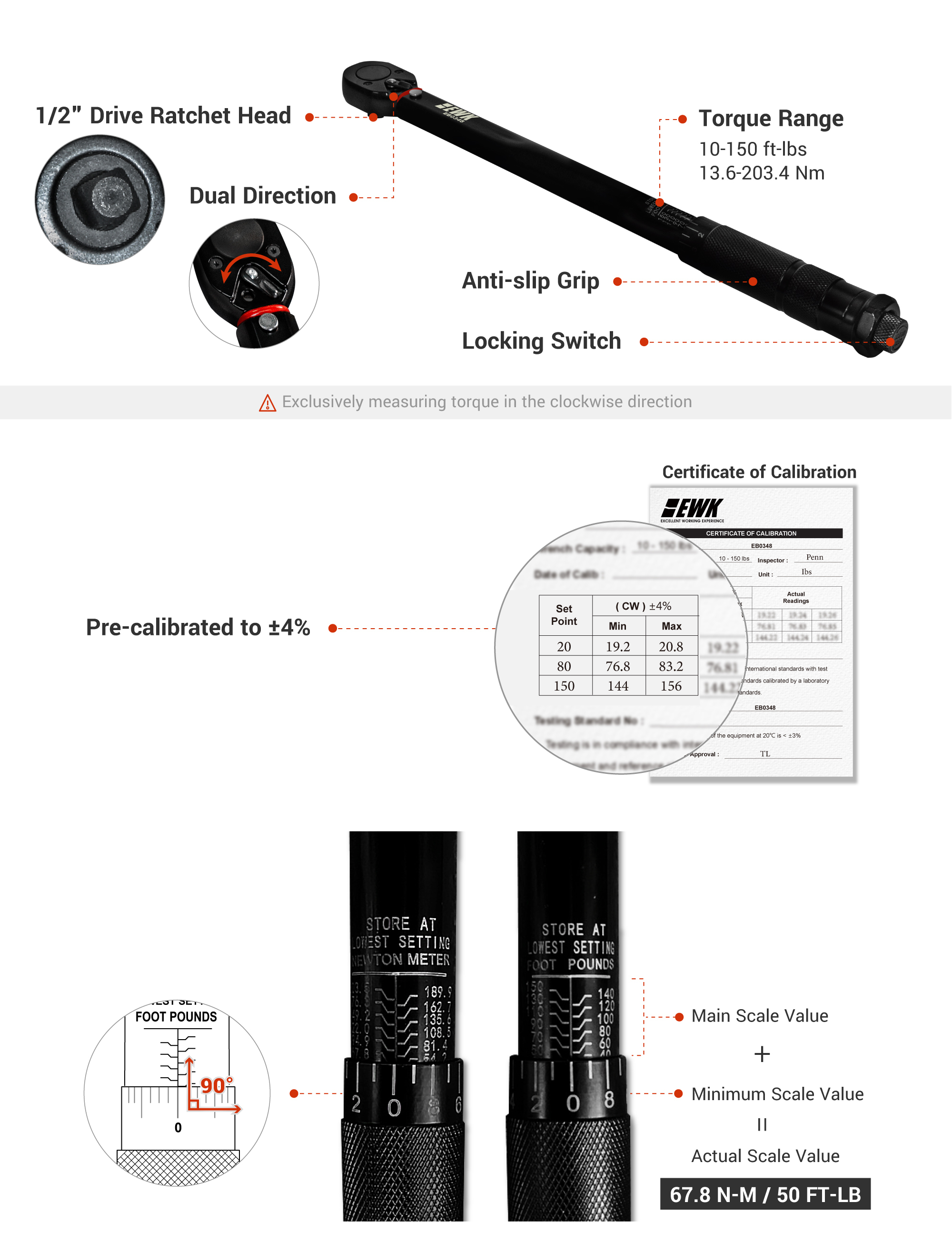Set amount of torque required by turning the knurled handle until reach the exact amount on case graduations.