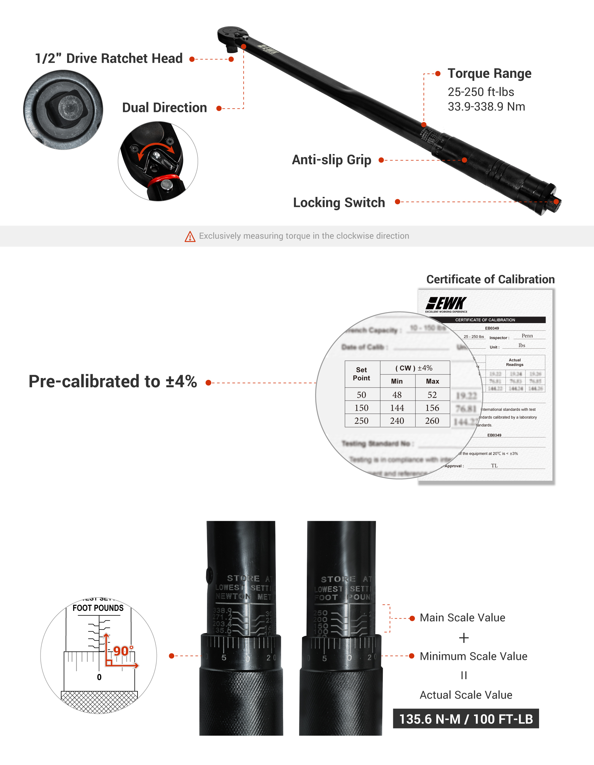 Set amount of torque required by turning the knurled handle until reach the exact amount on case graduations.