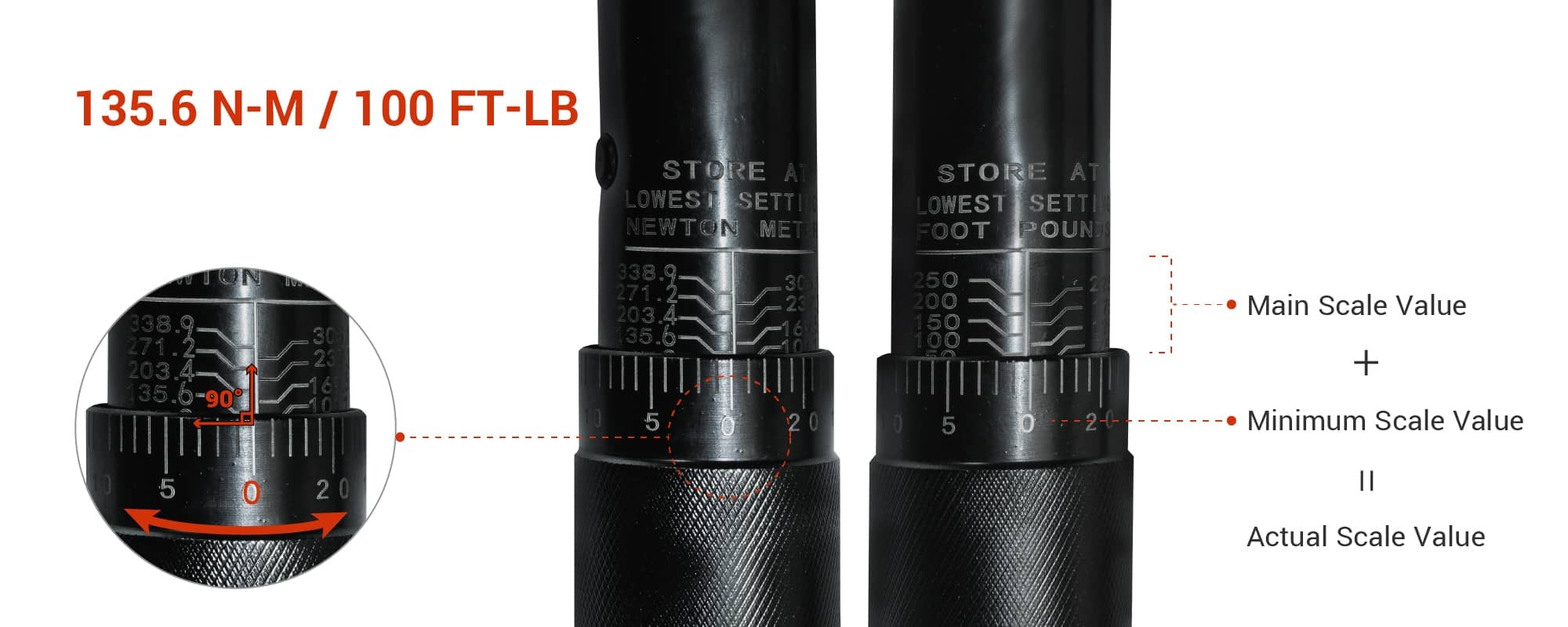 Set amount of torque required by turning the knurled handle until reach the exact amount on case graduations.
