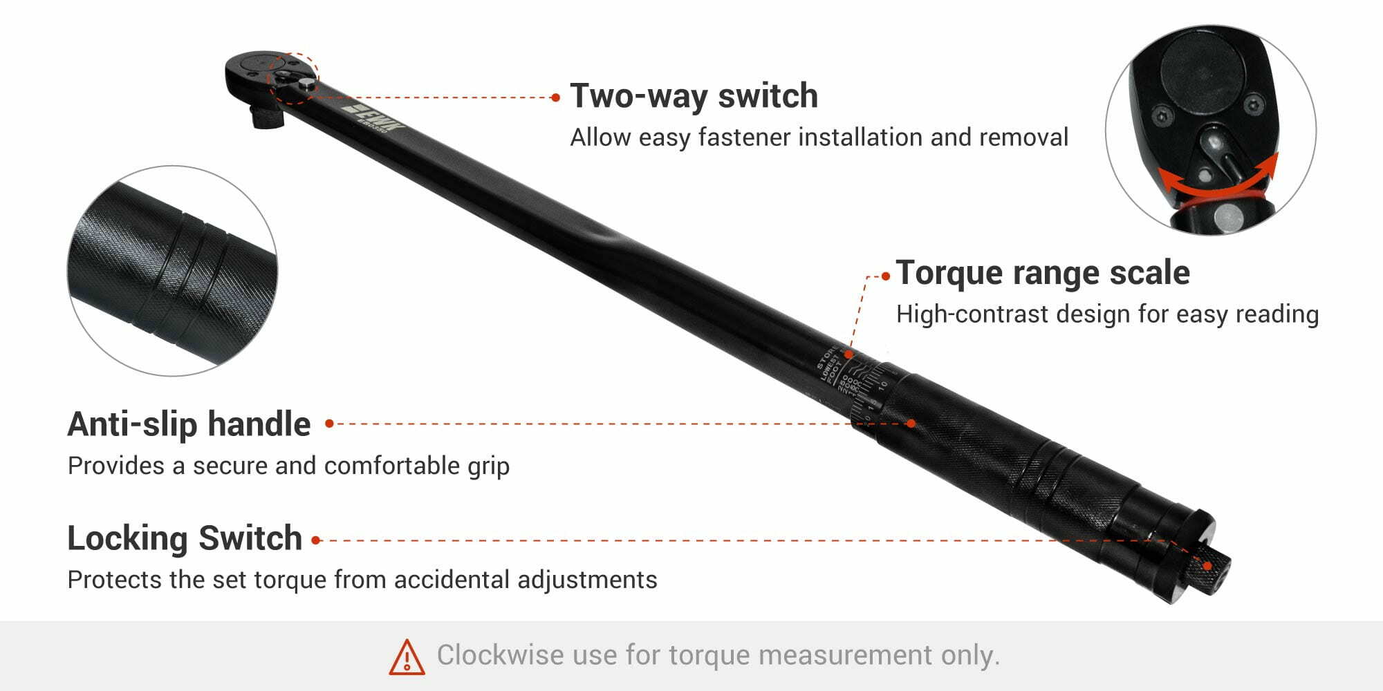 Apply gradual force until you hear a "click" from the torque wrench, indicating that the set torque value has been reached, and stop turning.