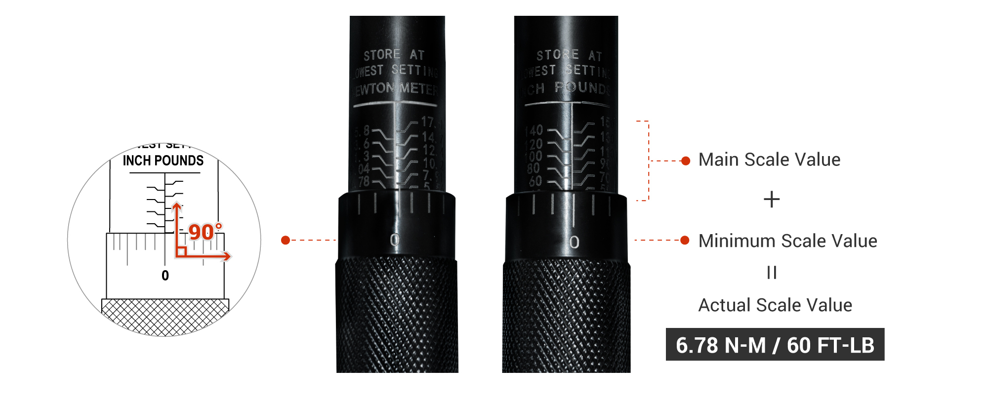 Set amount of torque required by turning the knurled handle until reach the exact amount on case graduations.