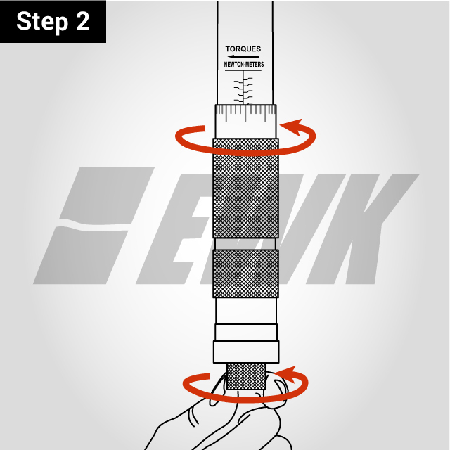 Apply gradual force until you hear a "click" from the torque wrench, indicating that the set torque value has been reached, and stop turning.