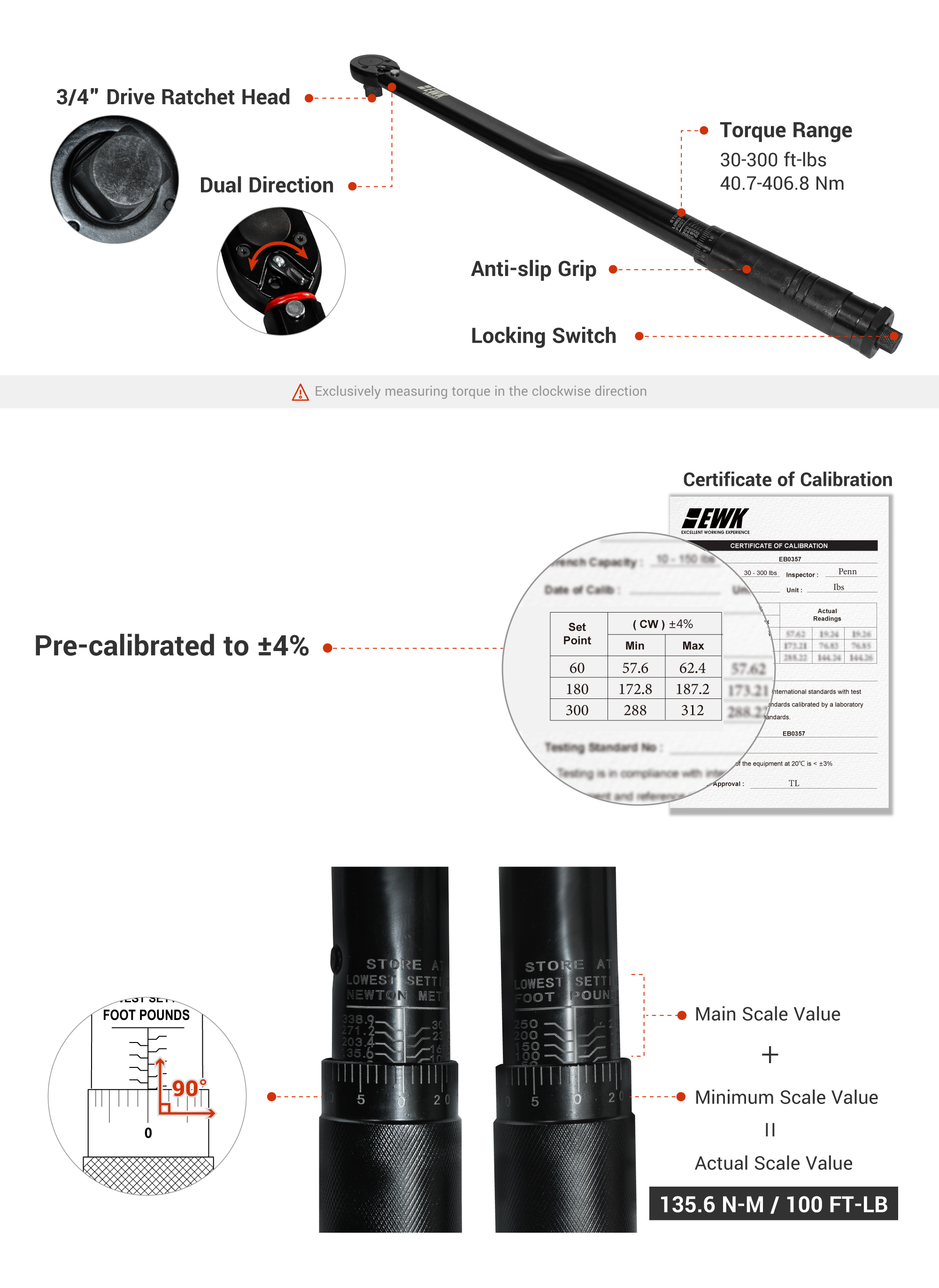 Set amount of torque required by turning the knurled handle until reach the exact amount on case graduations.