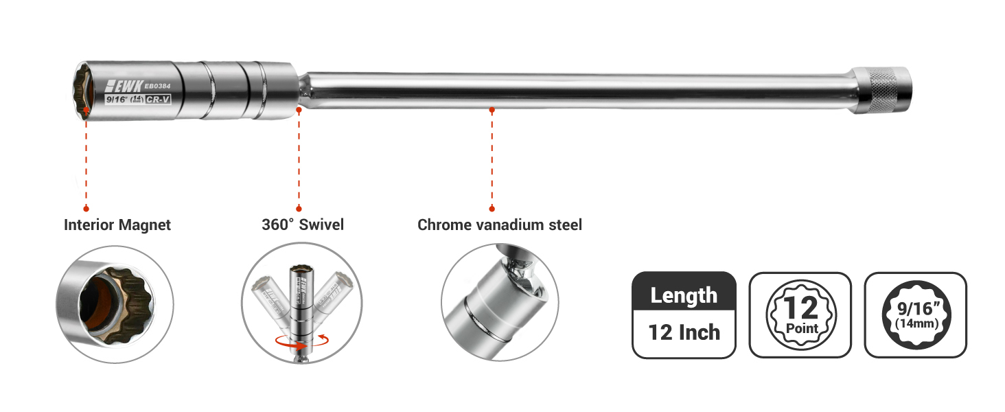 360-degree spark plug socket ensures maximum flexibility even in tight area and easily improve access to spark plug.