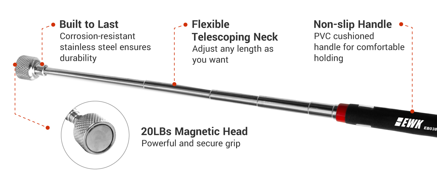 Equipped with a PVC anti-slip cushioned handle, this magnetic retrieval tool guarantees comfort and secure handling, making it easier to retrieve heavier metal objects.
