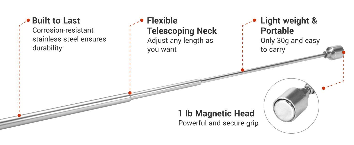Metal objects weighing up to 1 lbs can be effortlessly retrieved with the strong magnetic force.