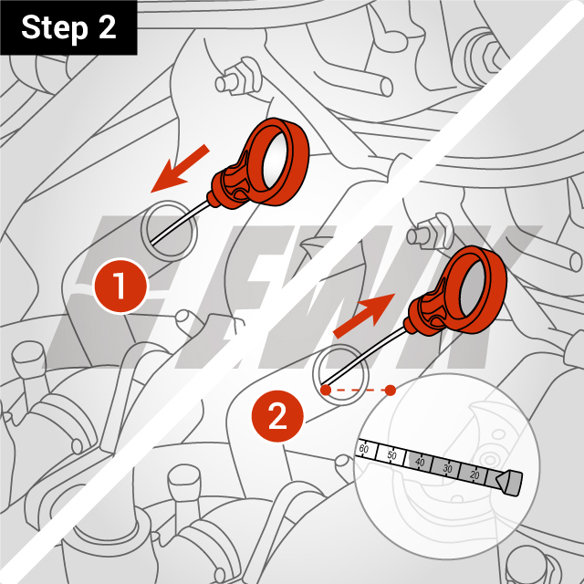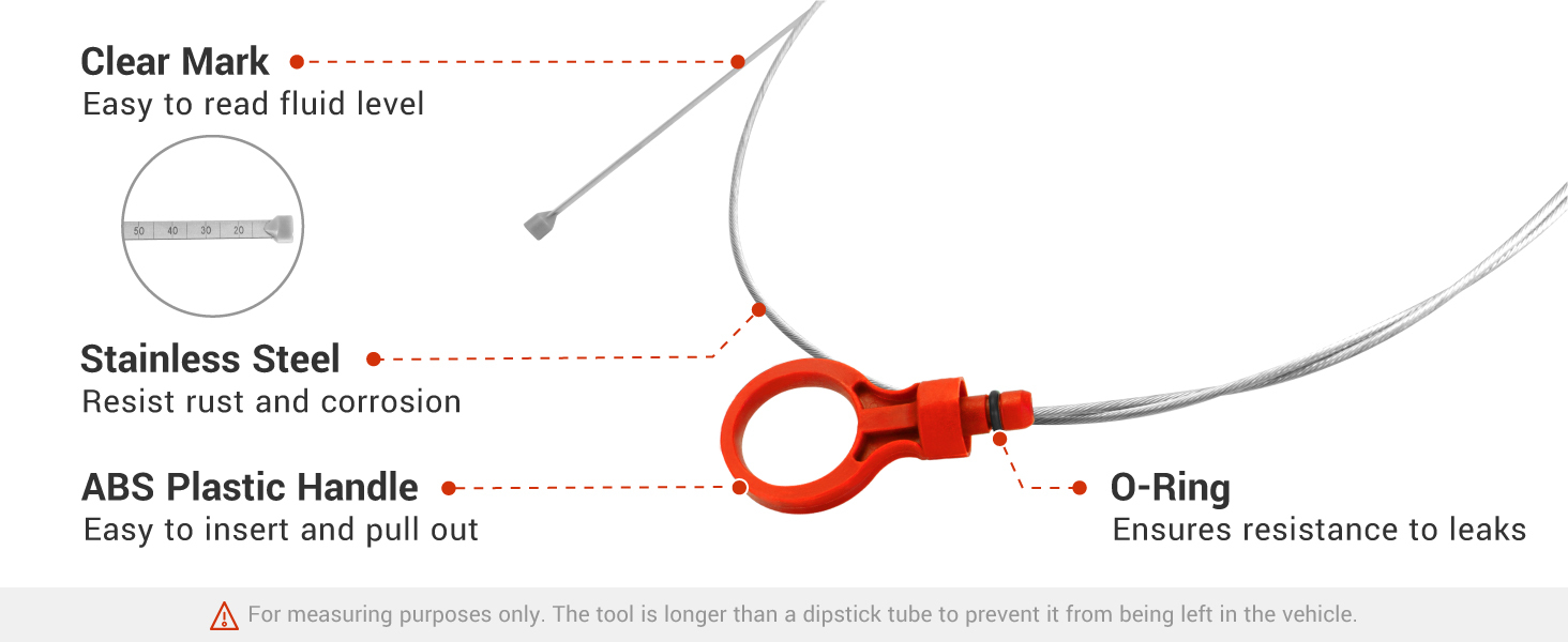 Insert the dipstick into the transmission fluid checkhole, pull it out, and read the fluid level. Note: Dipstick will be longer than the tube.