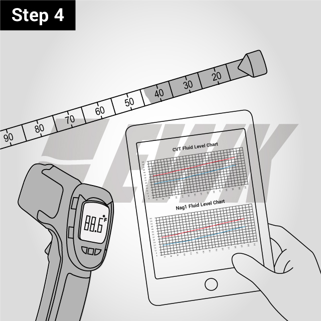 Determine the correct fluid level by checking the dipstick and referring to the appropriate fluid level chart for your vehicle.