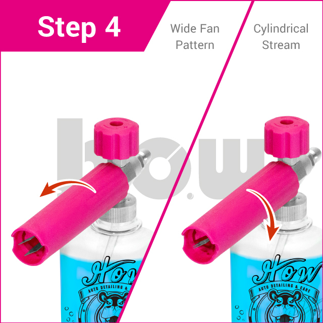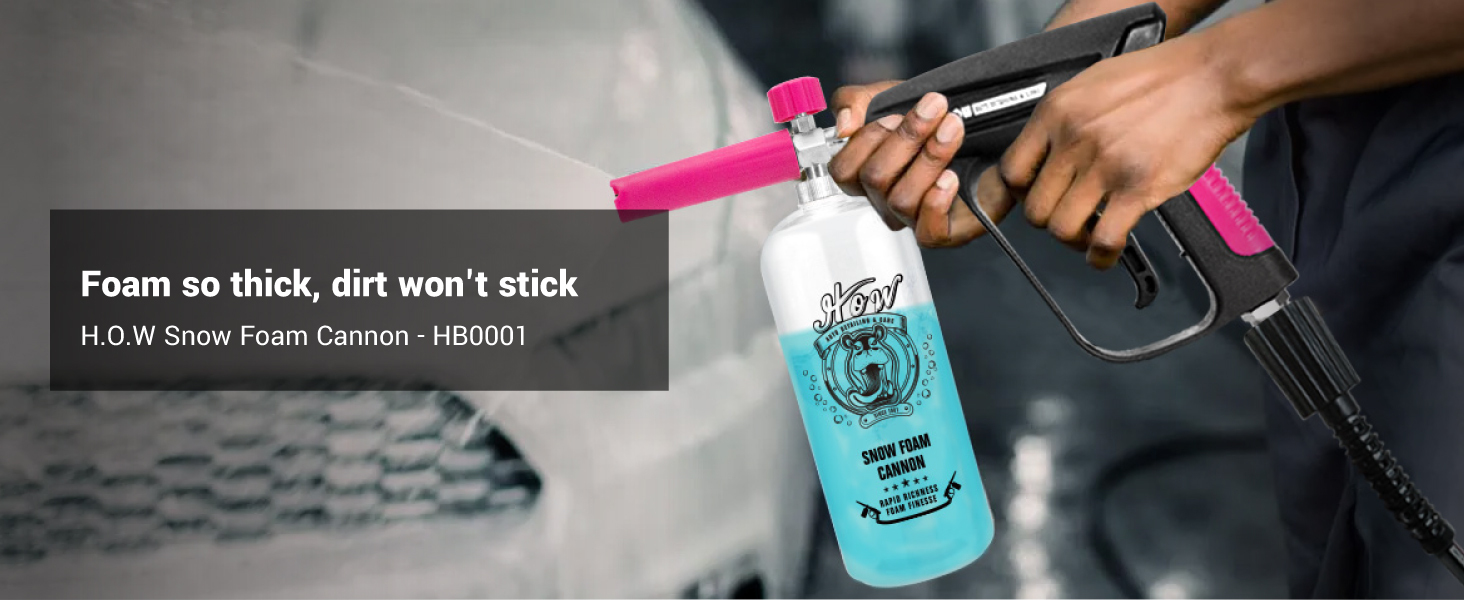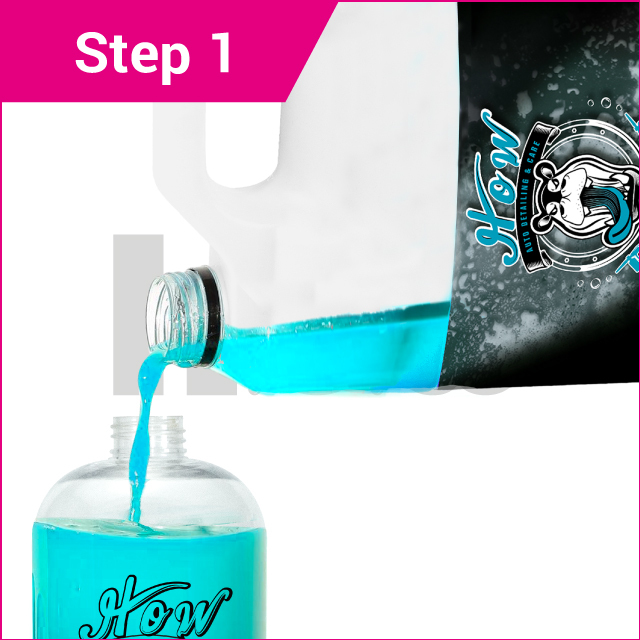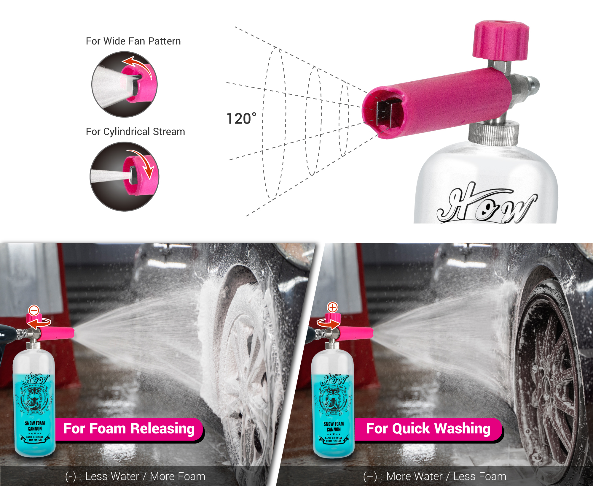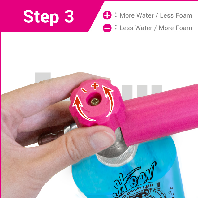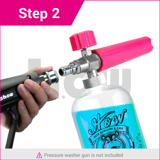 Wet the car body. Then add car wash soap (100-200 c.c) and water to the foam cannon and shake it well.